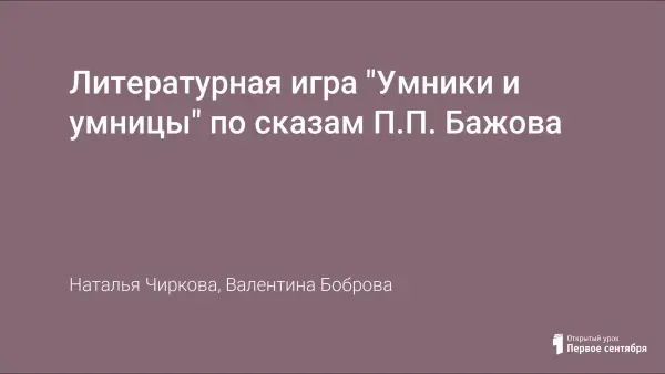 Литературная игра "Умники и умницы" по сказам П.П. Бажова