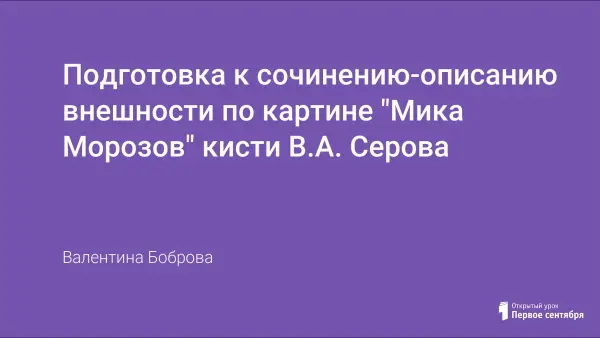 На занятии учащиеся знакомятся с творчеством В.А. Серова и углубляют навыки работы над сочинением-описанием.