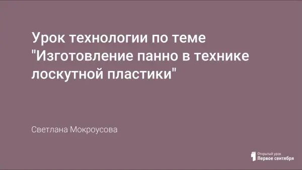 Урок предназначен для учителей технологии, использующих в работе метод проекта. Он поможет при изучении блока "Художественная обработка материала". Цель: формирование навыков в технике аппликации.