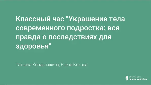 Классный час "Украшение тела современного подростка: вся правда о последствиях для здоровья"
