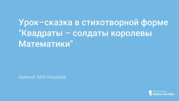 Знакомство с понятием квадрат числа в занимательной форме. Закрепление определения квадрата числа на геометрическом материале – вычисление площади квадрата. Применение групповых методов работы с учащимися посредством математической эстафеты.