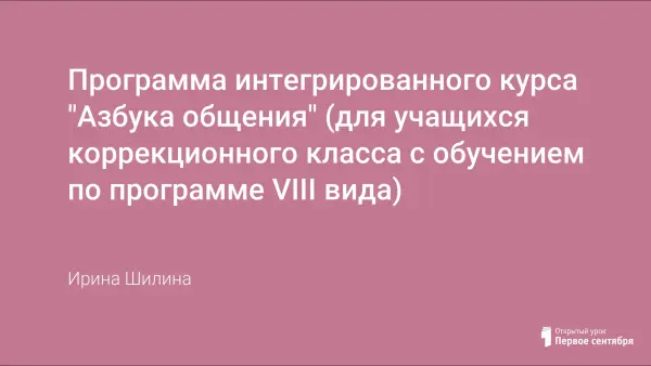 В программе интегрированного курса "Азбука общения" предложены темы занятий и виды работ, реализующие потребности учащихся с ограниченными возможностями, такие, как научение ребенка умению видеть взаимозависимость человека и природы, привить любовь к животному и растительному миру, тому, что его окружает.