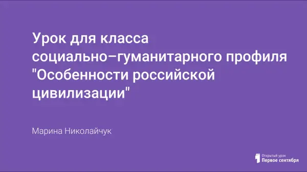 Уроки, посвященные особенностям российской цивилизации, культуры, можно провести как вступительные к теме «Модернизирующееся общество», перед изучением истории России в 10-м классе (перед темой «Россия в XIX в.») или как вводные к изучению отечественной истории в 11-м классе.