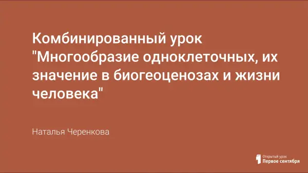 Урок позволяет сформировать у учащихся понятие о многообразии одноклеточных, особенностях строения и жизнедеятельности представителей типов Споровики, Инфузории, о роли одноклеточных в биосфере. Развивает умения пользоваться различными источниками информации, выделять главное, сравнивать и делать выводы.