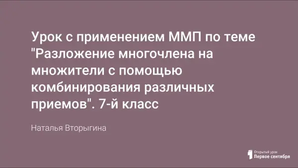 В разработке урока отводится время на повторение ранее изученного материала по частям. Вначале ещё раз отрабатываются формулы сокращенного умножения, затем вынесение общего множителя и способ группировки. Применять комбинированные методы можно, используя алгоритм, который демонстрируется во время решения через проектор.