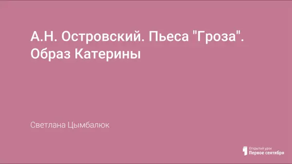 Урок предполагает использование интерактивной доски и просмотр видеофрагмента из кинофильма "Гроза". Предложенный материал даёт возможность учащимся получить представление о драматургии как искусстве. Широко использованы межпредметные связи.