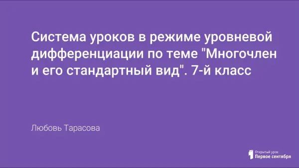 Система уроков в режиме уровневой дифференциации, состоящая из четырёх уроков: урок изучения нового материала по теме «Многочлен и его стандартный вид», урок изучения нового материала по теме «Сложение и вычитание многочленов», урок комплексного применения знаний по теме «Сложение и вычитание многочленов» и урок комплексного применения знаний по теме «Сложение и вычитание многочленов».
