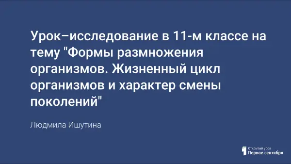 Целью данного урока является расширение и углубление знания учащихся о генетических особенностях различных способов размножения; определение зависимости жизненного цикла вида от особенностей размножения организмов, среды обитания, способов существования и жизненных форм.