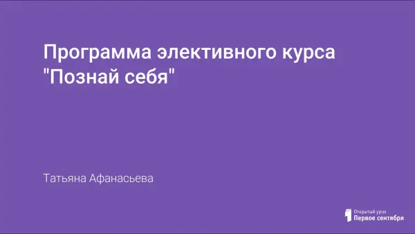 Реализация программы элективного курса «Познай себя» осуществляется в рамках предпрофильной подготовки учащихся. Занятия по данной программе позволяют учащимся почувствовать необходимость психологических знаний для личностного развития (формирования навыков эффективной коммуникации, изучения собственных способностей, формирование жизненных целей и ценностей).