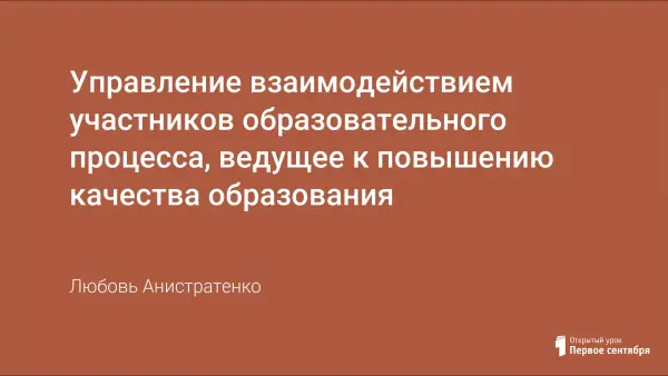 Управление взаимодействием участников образовательного процесса, ведущее к повышению качества образования, является главным для администратора школы. От умелых действий участников образовательного процесса, совместных усилий, направленных на повышение качества образования, зависит конечный результат педагогической деятельности, всего образования.