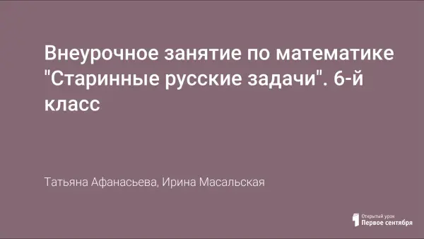 Внеурочное занятие по математике "Старинные русские задачи". 6-й класс