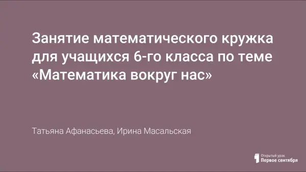 Занятие математического кружка для учащихся 6-го класса по теме «Математика вокруг нас»