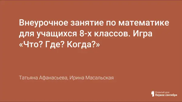 Внеурочное занятие по математике для учащихся 8-х классов. Игра «Что? Где? Когда?»
