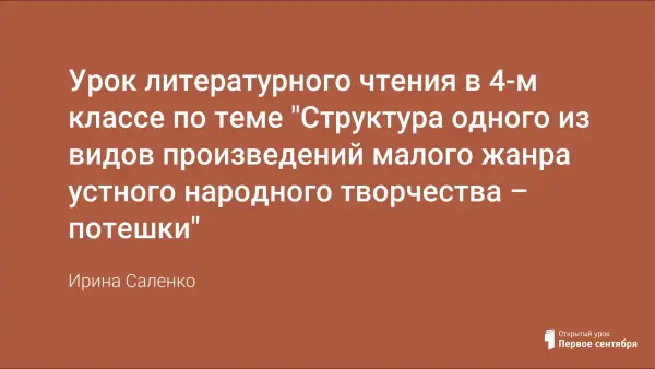 Урок литературного чтения в 4-м классе по теме "Структура одного из видов произведений малого жанра устного народного творчества – потешки"