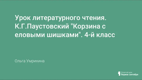 Цель урока: расширить знания о творчестве К.Г.Паустовского; помочь понять смысл произведения; обучать правильному, осознанному, выразительному чтению; формировать творческое воображение через умение представлять картины, по музыкальному произведению; воспитывать чувство прекрасного посредством связи литературы и музыки.