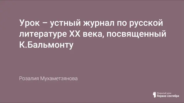 Урок – устный журнал по русской литературе XX века, посвященный К.Бальмонту