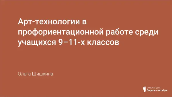 Арт-технология – инновационная педагогическая технология, которая постепенно внедряется в учебно-воспитательный процесс школ. В процессе творческой деятельности для диагностики и коррекции профориентации используется музыкотерапия, рисуночной терапии, коллажетерапии, терапии с помощью камней. В данной работе показан пример занятия с элементами арт-терапии.