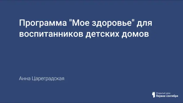 Программа "Мое здоровье" состоит из четырех блоков. Первый блок рассчитан на старший дошкольный возраст, в котором делается акцент на привитие и формирование начальных навыков культуры здоровья. Занятия построены по принципу игры, с помощью которой ребенку легче усвоить умения и навыки культуры здоровья. Во втором блоке рассматривается младший школьный возраст... Программа построена с учетом индивидуальных особенностей детей.