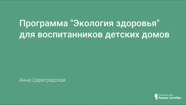 Решением педагогического совета на базе детского дома создать команду под названием "Экология Здоровья", которая будет вести пропаганду здорового образа жизни, а также приобщать к спорту детей детского учреждения.