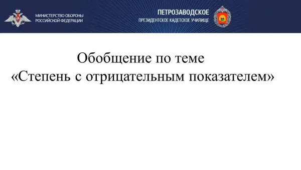 План урока: 1) определение степени с целым отрицательным показателем; 2) стандартный вид числа; 3) свойства степени с целым отрицательным показателем.