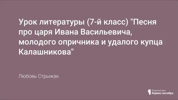 Урок посвящен изучению творчества М.Ю. Лермонтова, его одному из ярчайших произведений. Учитель использует предварительную работу с целью изучения эпохи ХVI века, образа Ивана Грозного. Дается ученикам задание: нарисовать рисунки по заданному эпизоду. В ходе урока учащиеся составляют киноленту-презентацию из своих рисунков, сопровождая каждый кадр комментариями.