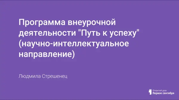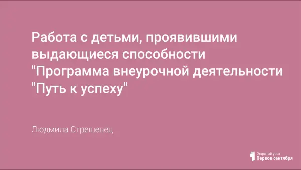 Программа «Путь к успеху» направлена на работу с детьми, проявившими выдающиеся способности и является наиболее актуальной на сегодняшний момент для обучающегося, т.к. обеспечивает развитие общеинтеллектуальных умений, необходимых для дальнейшей самореализации и формирования личности ребенка. Среди общих целей образования центральное место занимает развитие абстрактного мышления. Срок реализации программы 4 года.