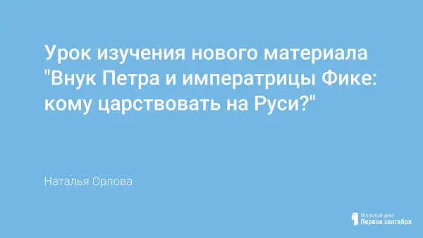 Урок изучения нового материала "Внук Петра и императрицы Фике: кому царствовать на Руси?"