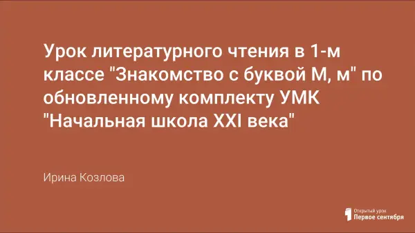 На уроке обучения грамоте первоклассники знакомятся с новыми звуками [м] , [м'] и буквами М, м: проводят звукобуквенный анализ слов с помощью фишек, сравнивают твёрдые и мягкие согласные звуки, обозначают их буквами, считают слоги; осваивают способ чтения прямого слога с помощью пособия «окошечки»; учатся составлять словосочетания, работая в паре; читать слова и предложения с изученными буквами.