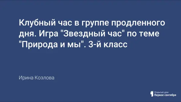 Клубный час в группе продленного дня воспитывает чувство доброты, сопереживания, сопричастности ко всему и прекрасному, что нас окружает; развивает интерес к различным представителям животного и растительного мира; воспитывает любовь и бережное отношение к природе.