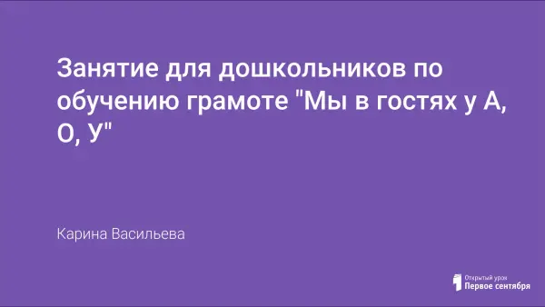 Цель урока-игры: способствовать развитию звуко-буквенного анализа; закреплять знания о гласных звуках и буквах А, О, У; закреплять умение определять звук в названиях предметов и находить соответствующую букву; слышать нужные звуки и называть слова с этими звуками; узнавать начертание букв, печатать буквы, отгадывать загадки.