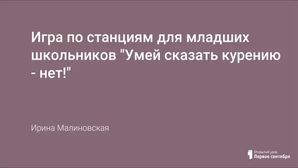 Игра по станциям для младших школьников проводится с целью формирования негативного отношения учащихся к курению. В ходе игры ребята знакомятся с вредным влиянием никотина на организм человека; с правилами достойного отказа от вредных привычек: в ходе игры им дается возможность проявить свои творческие способности. Игра рассчитана на учащихся 4-7-х классов.