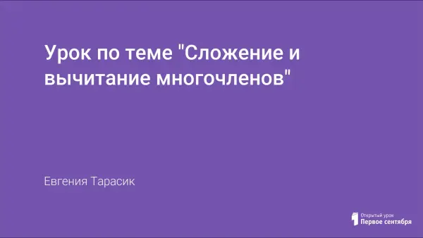 В ходе занятия школьники учатся решать типовые математические задачи на сложение и вычитание многочленов. Урок новых знаний снабжен презентацией, шифрованным письмом и творческим домашним заданием.