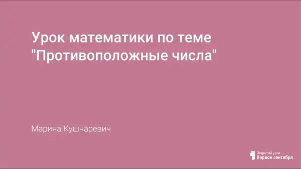 Данная статья – разработка урока изучения нового материала по теме « Противоположные числа» в 6-м классе с использованием ИКТ. Включены элементы модульной технологии (выходной контроль с самопроверкой). Урок содержит задачи, связанные с понятием «здоровый образ жизни», материал из истории математики. В домашнем задании используется дифференцированный подход.
