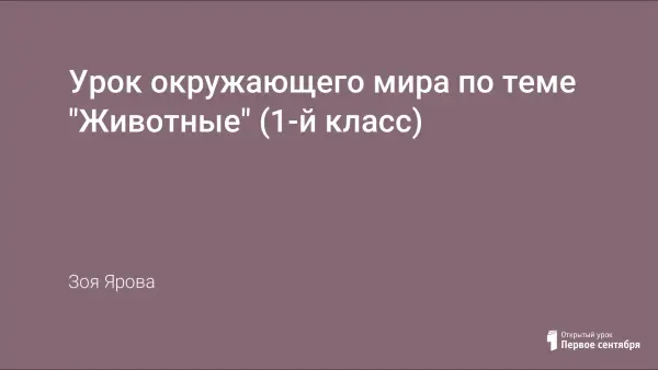 Урок окружающего мира в 1-м классе обобщит знания учащихся об особенностях различных групп животных. Познакомит с интересными фактами из жизни животных. Заставит задуматься о своём отношении к природе.