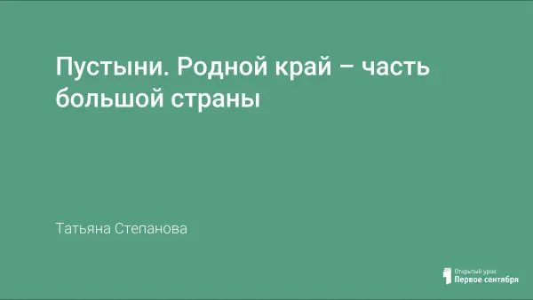 Урок помогает закрепить материал по теме "В зоне степей", оценить уровень его усвоения; повторить тему "Природный мир тундры"; сформировать знания по новой теме "Пустыни".