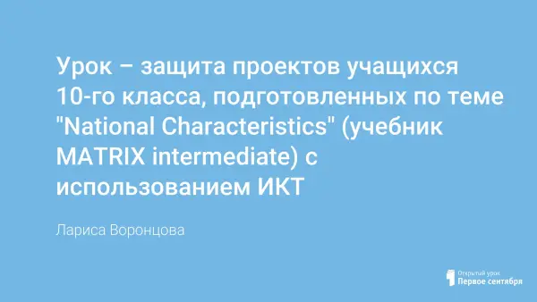 В проекте проведено исследование национальных особенностей ирландцев, шотландцев и американцев. Данный вид деятельности тренирует навык поискового чтения с широким использованием англо-язычных интернет-сайтов, умение логически выстраивать материал, углубляет страноведческие знания.