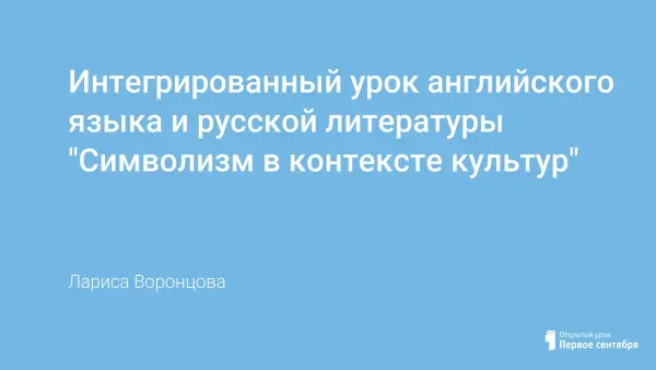 Интегрированный урок английского языка и русской литературы в 11-м классе гуманитарного профиля представляет собой совместный проект учащихся и учителей, посвященный литературному течению «символизм». Одной из проблем, исследованных учащимися в проектной работе, является правомерность причисления поэтического творчества американского писателя периода романтизма Э.По к символизму. В работе также подробно анализируется стихотворение Э.По «Ворон».