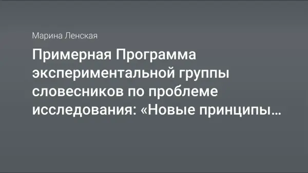 Примерная Программа экспериментальной группы словесников по проблеме исследования: «Новые принципы и технологии преподавания литературы, основанные на анализе связей художественной литературы с русским литературным языком, его художественным стилем»