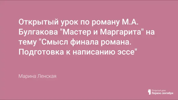 Открытый урок по роману М.А. Булгакова "Мастер и Маргарита" на тему "Смысл финала романа. Подготовка к написанию эссе"