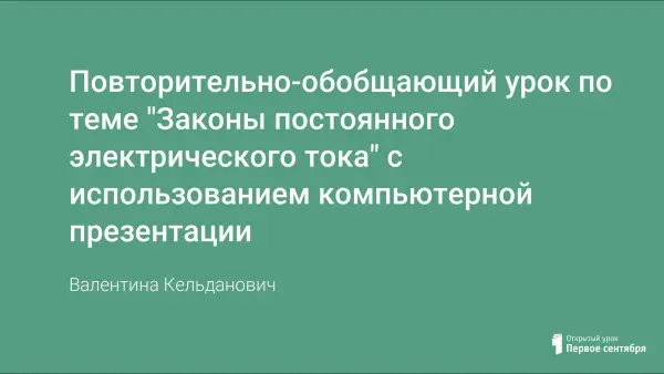 Повторительно-обобщающий урок по теме "Законы постоянного электрического тока" с использованием компьютерной презентации