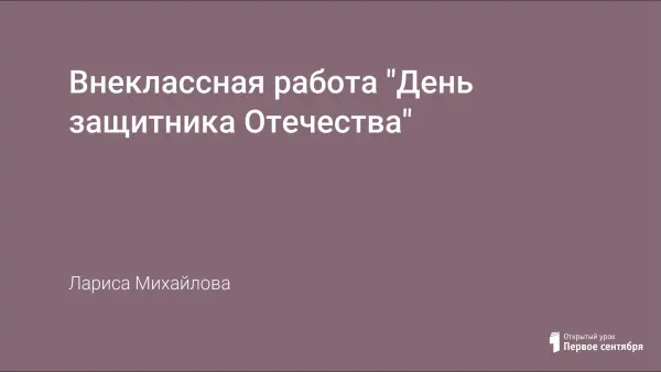 Внеклассное мероприятие посвящается всем мужчинам - защитникам Отечества – и знакомит учащихся с историческими фактами времен ВОВ, войны в Афганистане, со службой военнослужащих в мирное время.