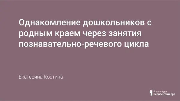 Воспитание краеведением подразумевает не только обучение и распространение знаний о прошлом и настоящем своего края, но и развитие потребности в действенной заботе о его будущем и сохранении его культурного и природного наследия. Предлагаемый материал знакомит читателя с приемами работы по ознакомлению с родным краем в условиях логопедической группы.