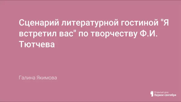 Сценарий литературной гостиной "Я встретил вас" по творчеству Ф.И. Тютчева