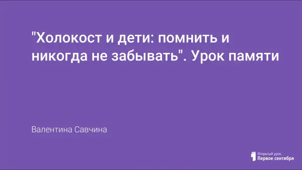 Урок памяти посвящен одной из важнейших проблем Великой Отечественной войны – проблеме национализма, антисемитизма. Проблема геноцида еврейского народа, Холокоста в годы войны рассматривается на примере отношений нацистов к детям.