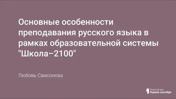 В работе рассматриваются основные методические особенности преподавания русского языка в условиях современной личностно ориентированной образовательной системы «Школа–2100», максимально соответствующие современным направлениям модернизации российского образования и эффективно реализующие идеи развивающего обучения.