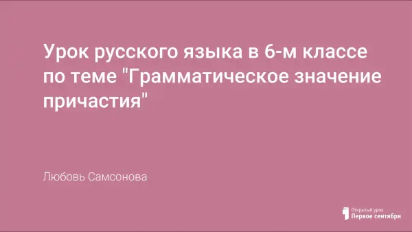 Автор урока показывает основные структурные элементы урока на примере изучения причастия. Все задания урока построены на одной картине известного художника «Грачи прилетели», что иллюстрирует принцип смысловой цельности урока путем текстовой организации материала, преобладающий именно в рамках данной образовательной системы.