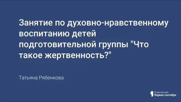 Автор статьи представляет конспект занятия по духовно-нравственному воспитанию детей старшего дошкольного возраста «Что такое жертвенность?», основная цель которого – приобщение ребенка к общечеловеческим ценностям: любовь, жертвенность, милосердие.