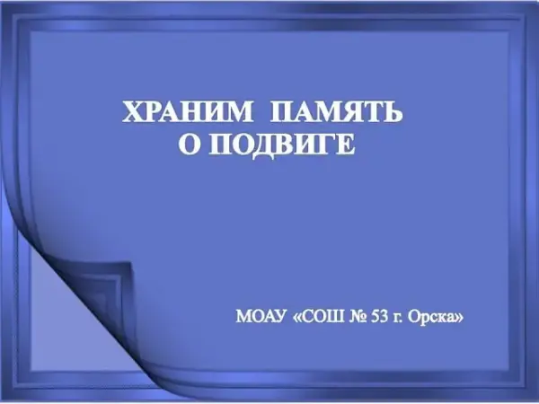 Уже пролетело 70 лет со дня Победы в Великой Отечественной войне 1941–1945 годов. Война затронула абсолютно каждый город и каждую деревню нашей Родины. Не только те города, в которых происходили военные действия, испытывали на себе все ужасы этой трагедии, но и те которые находились в глубоком тылу. В их числе и наш родной г. Орск Оренбургской области. О том, как наше современное поколение хранит память о подвигах солдат Великой Отечественно войны, и будет наше внеклассное мероприятие.
