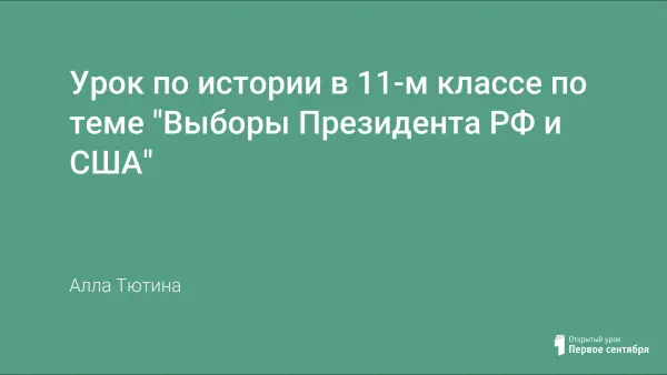Урок истории по теме «Выборы Президента в России и США» проводится в 11-м классе. Учитывается, что с порядком выборов Президента РФ ученики познакомились на уроках права в 9-м классе, в 11-м они узнают порядок выборов Президента США.