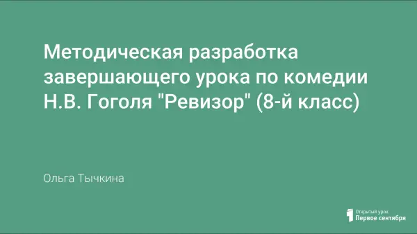 Представленный вашему вниманию урок-спектакль, урок – погружение в мир гоголевских героев проводится в конце изучения комедии Н.В. Гоголя, подводит итог изученному материалу, даёт учителю возможность не только определить степень усвоения материала, но и реализовать творческие возможности учеников.